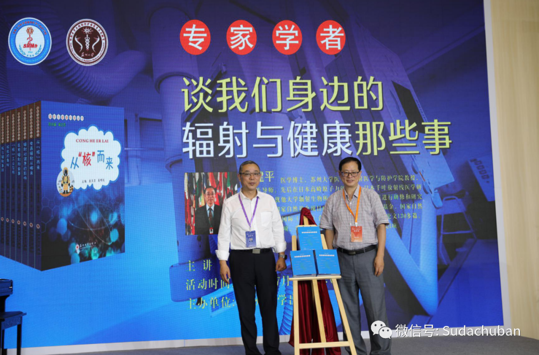 活动上,苏州大学放射医学与辐射防护国家重点实验室曹建平教授和苏州大学出版社盛惠良社长共同为“辐射与健康科普丛书”首发揭幕。